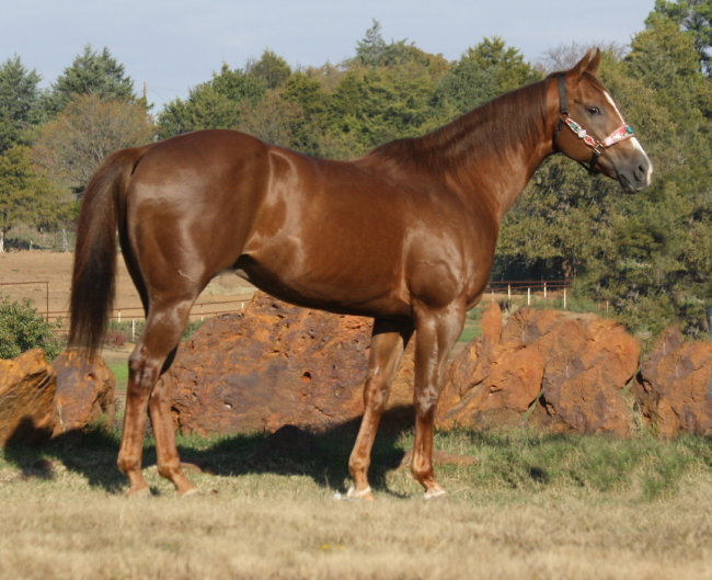 This filly has a great start, has been ridden outside and is ready for a job. She is royally bred and will make an awesome barrel horse prospect. She has just been started slowly around the barrels and is showing tons of natural ability. 940-368-0785